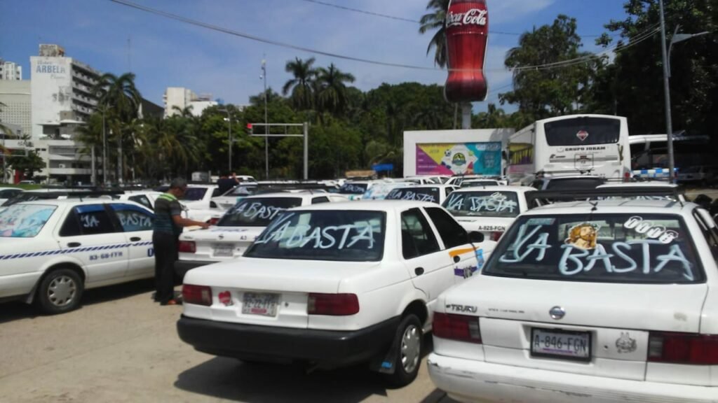 ACAPULCO.— Transportistas protestaron este viernes sobre la Costera “Miguel Alemán”, a la altura del Centro de Convenciones de Acapulco, para exigir a las autoridades garantías de seguridad, luego de que sitios de taxis que cubren las rutas Acapulco-Costa Chica, suspendieron servicio por los recientes ataques armados y extorsiones.