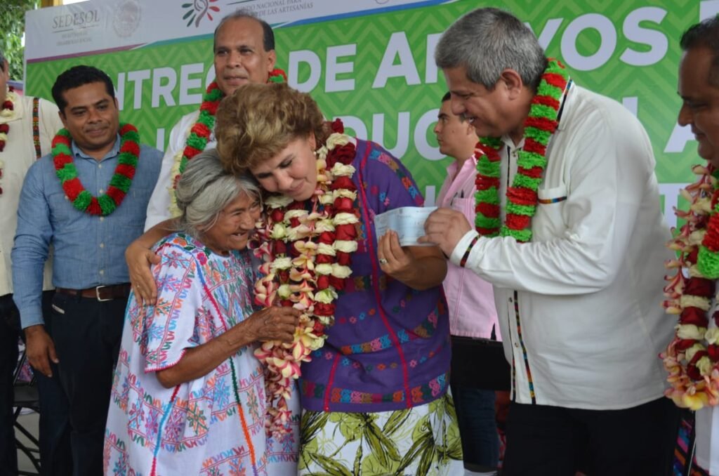 En el primer punto de su visita, en Ometepec, Mercedes Calvo entregó 315 apoyos a las artesanas que elaboran textiles y alfarería, además de 13 máquinas de coser al “Grupo Arcoiris”, a través de los programas del Fondo Nacional para el Fomento de las Artesanía (FONAR) y la Secretaría de Economía del gobierno del estado, para mejorar la producción y calidad de sus productos, así como capacitación para la innovación de sus creaciones.