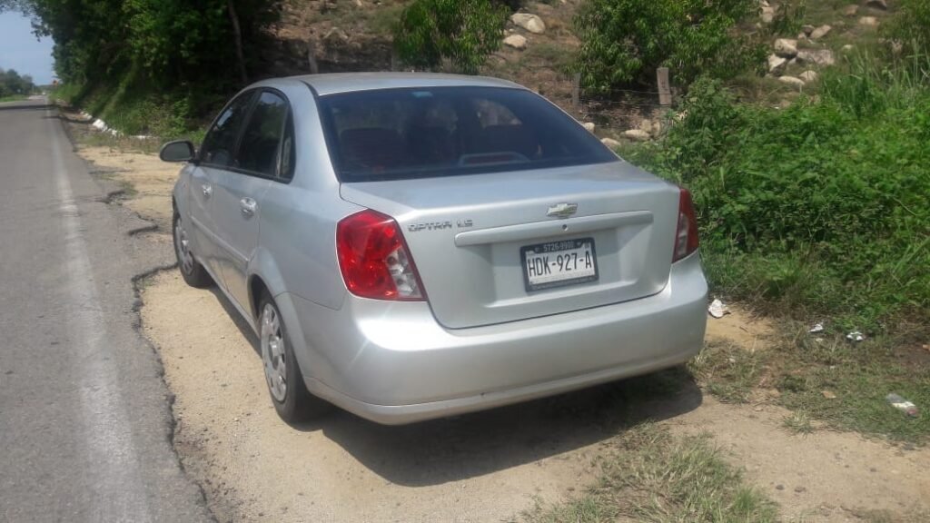 A eso de las 13:00 horas, las autoridades fueron informadas sobre un vehículo abandonado a orilla de la carretera, así que elementos policiacos se trasladaron al lugar, hallando un vehículo de la marca Chevrolet, tipo Optra, de color blanco, con placas de circulación HDK-927-A del Estado de Guerrero. Dos cadáveres estaban dentro de la cajuela, mientras que el tercero fue localizado en los asientos traseros. Todos ellos estaban amarrados y presentaban impactos de bala.