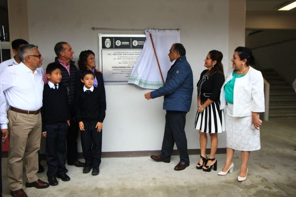El mandatario inauguró dos edificios de la primaria “Vicente Guerrero” que fueron construidos como parte de un programa de reconstrucción de escuelas públicas; donde estuvo acompañado del secretario de Finanzas, Tulio Pérez Calvo; de Educación, José Luis González de la Vega; de Planeación, David Guzmán Maldonado.