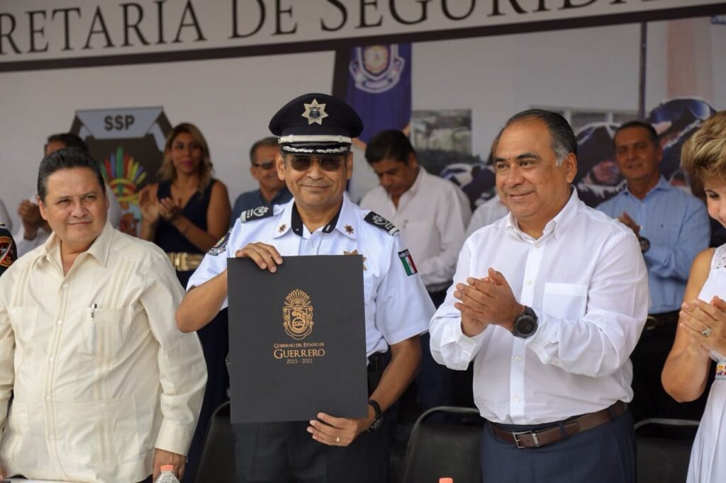 Durante la ceremonia sin precedente, el mandatario guerrerense reconoció el empeño y la implementación de estrategias y acciones de combate a la delincuencia en Guerrero durante el tiempo que estuvo Almazán Cervantes al frente de la SSP.