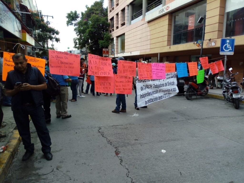 Trabajadores de base y supernumerarios de la Comisión de Agua Potable y Alcantarillado de Chilpancingo (Capach), ‘tomaron’ dichas oficinas y bloquearon la avenida Benito Juárez, frente al palacio municipal, para exigir el pago de su quincena y prima vacacional que se les adeuda a casi 260 empleados, pidiendo intervenga en el conflicto el gobierno del estado.