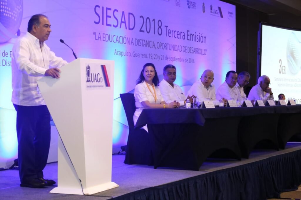 ACAPULCO.— Durante la inauguración del Tercer Seminario Internacional de Educación Superior Abierta y a Distancia (Siesad), el gobernador Héctor Astudillo Flores destacó la relevancia que retoma en los nuevos contextos, los modelos de educación virtual, lo que permite generar oportunidades de desarrollo, acercamiento hacia los diversos sectores, la promoción de la inclusión y el acercamiento de la educación a los distintos grupos poblacionales.