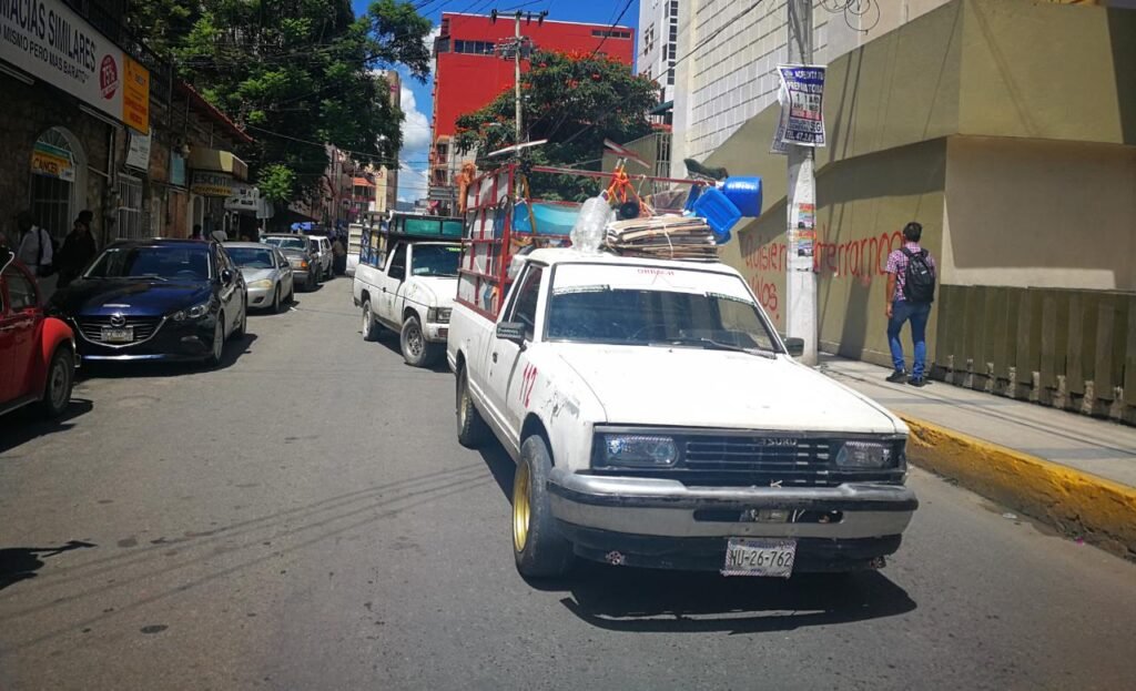 Minutos después de la una de la tarde atravesaron varias camionetas de ‘La Basura Jefa’ sobre la céntrica vialidad, la única avenida que quedaba libre, pues en esos momentos los trabajadores de la Comisión de Agua Potable y Alcantarillado de Chilpancingo (Capach) obstruían la Juan N. Álvarez y la calle Cristóbal Colón a la altura del paso a desnivel.