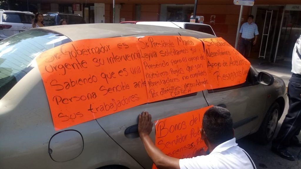 Ayer desde las 09:00 horas, un grupo de aproximadamente 30 trabajadores eventuales de la Capach bloquearon con automóviles y motocicletas las vialidades del centro, impidiendo el paso a los conductores, principalmente a los del servicio público de las distintas ruta que viajan al sur y que por obligación tienen que cruzar el paso a desnivel. (ANG)