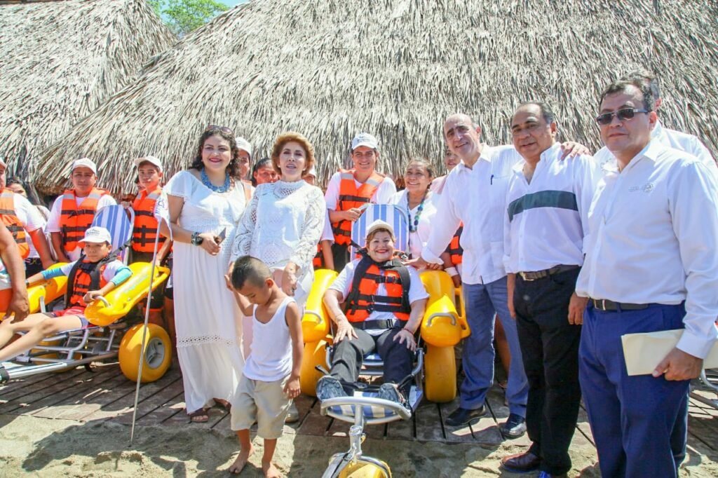 BAHÍAS DE PAPANOA, Mpio., de Tecpan.— En un hecho sin precedentes a favor de las personas con discapacidad, el gobernador Héctor Astudillo Flores y la presidenta del DIF Guerrero, Mercedes Calvo, inauguraron la primera playa incluyente en el estado, facilitando a las personas con alguna inhabilidad disfrutar del mar y las franjas de arena, mediante la adaptación de equipo.