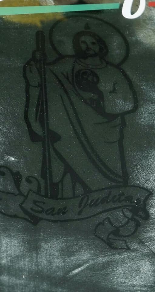 Desde el pasado 22 de septiembre, personas de todas las edades acudieron a venerar la imagen que a decir de los propietarios, apareció de manera inexplicable en el parabrisas de la unidad, eso sí, con su nombre escrito y todo.