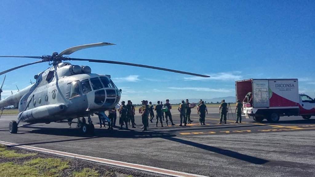 DURANGO, Dgo.— Diconsa, en coordinación con la Secretaría de la Defensa Nacional (Sedena) y el gobierno de Durango, estableció un puente aéreo para llevar alrededor de 2 toneladas de víveres, artículos de limpieza y aseo personal a la comunidad San Agustín de Buenaventura, única población del municipio del Mezquital que hasta el momento ha resultado incomunicada por deslaves a consecuencia de la temporada de lluvias.