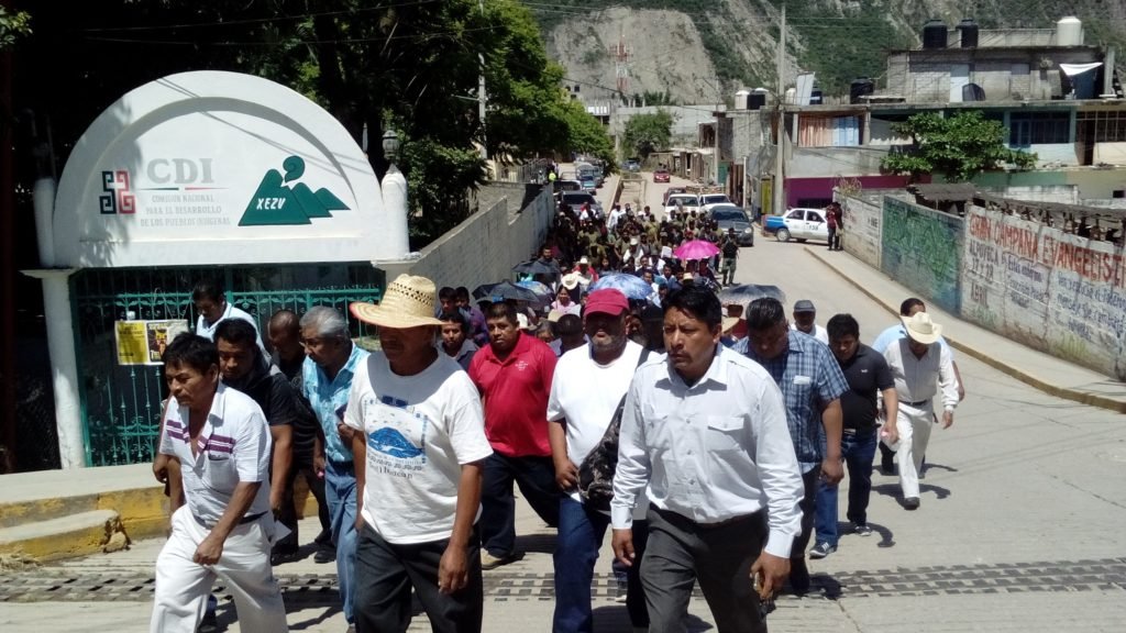 Al término de la reunión, los pobladores y policías comunitarios marcharon de la Unidad Deportiva hasta las instalaciones de la Comisión Federal de Electricidad (CFE), que han servido como base de operaciones desde el ingreso de la UPOEG.
