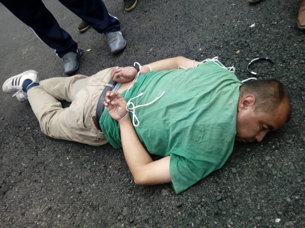 * Algunos hombres lo golpearon y ataron con una cuerda para después entregarlo a las autoridades