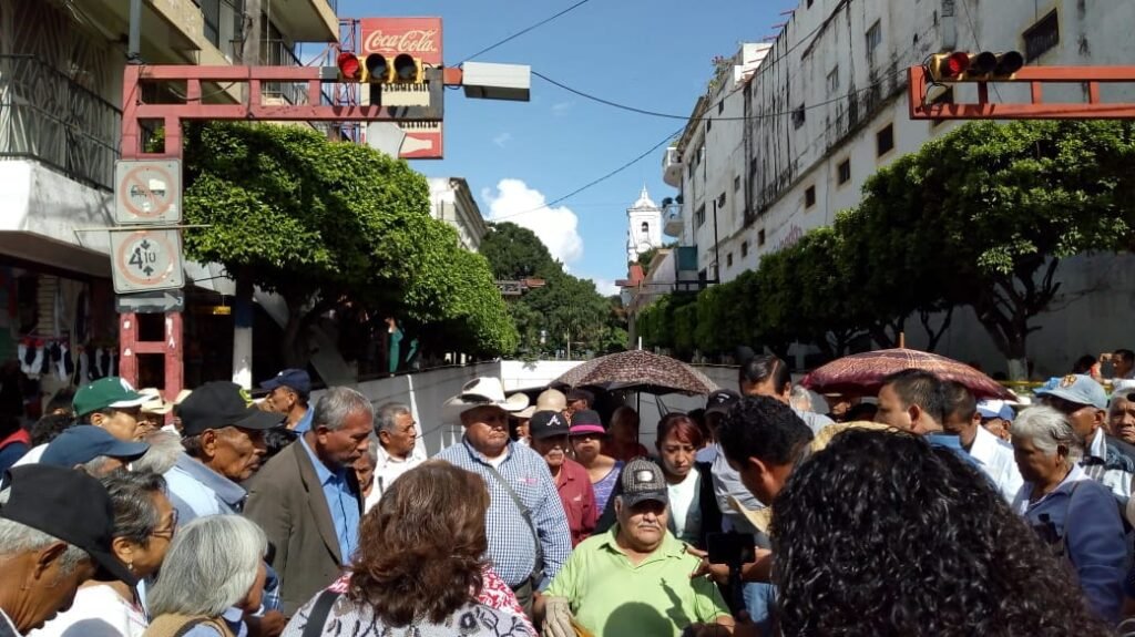 Fueron unos 200 adultos mayores los que de manera simultánea bloquearon algunas vialidades del primer cuadro de la ciudad, liderados por Juan Valenzo Villanueva. Cerraron la avenida Juan Álvarez en las esquina con Cristóbal Colón, justo en la entrada al paso a desnivel, así como Zaragoza e Ignacio Manuel Altamirano.