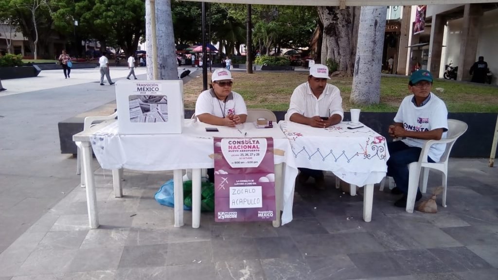 ACAPULCO.— Con escasa participación, ayer inició en Acapulco la Consulta Nacional sobre el nuevo Aeropuerto Internacional de la Ciudad de México, para lo cual se instalaron 10 casillas en diversos puntos de la ciudad, por parte de Morena y el equipo de transición del presidente electo Andrés Manuel López Obrador.