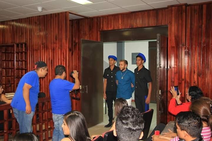 La Sala de Juicios Orales de la Universidad Autónoma de Guerrero (UAGro), prestó sus instalaciones para que fueran utilizadas como staff de la filmación del próximo video musical “Delincuente” del cantante de reggaetón llamado ‘Nando la Estrella’.
