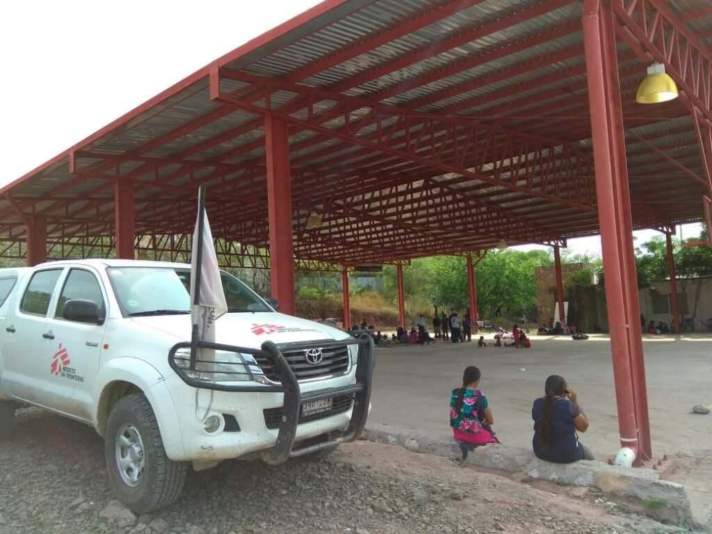 En punto de las 10 de la mañana, dos camionetas blancas con rótulos de MSF llegaron a la cancha techada que se ubica en la entrada de la cabecera municipal de Copalillo, en la región Norte de Guerrero.