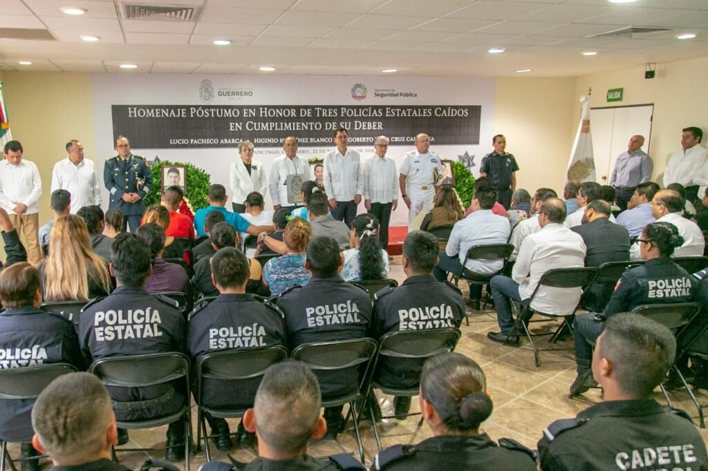 “La Secretaría de Seguridad Pública es una corporación sufrida pero heroica que ha hecho un gran trabajo en los momentos más difíciles por los que atraviesa Guerrero en materia de seguridad”, reconoció el gobernador Héctor Astudillo Flores, durante el homenaje póstumo a los tres policías que perdieron la vida en un ataque armado ocurrido en la comunidad de San Juan Tenería, en Taxco de Alarcón, el domingo pasado.