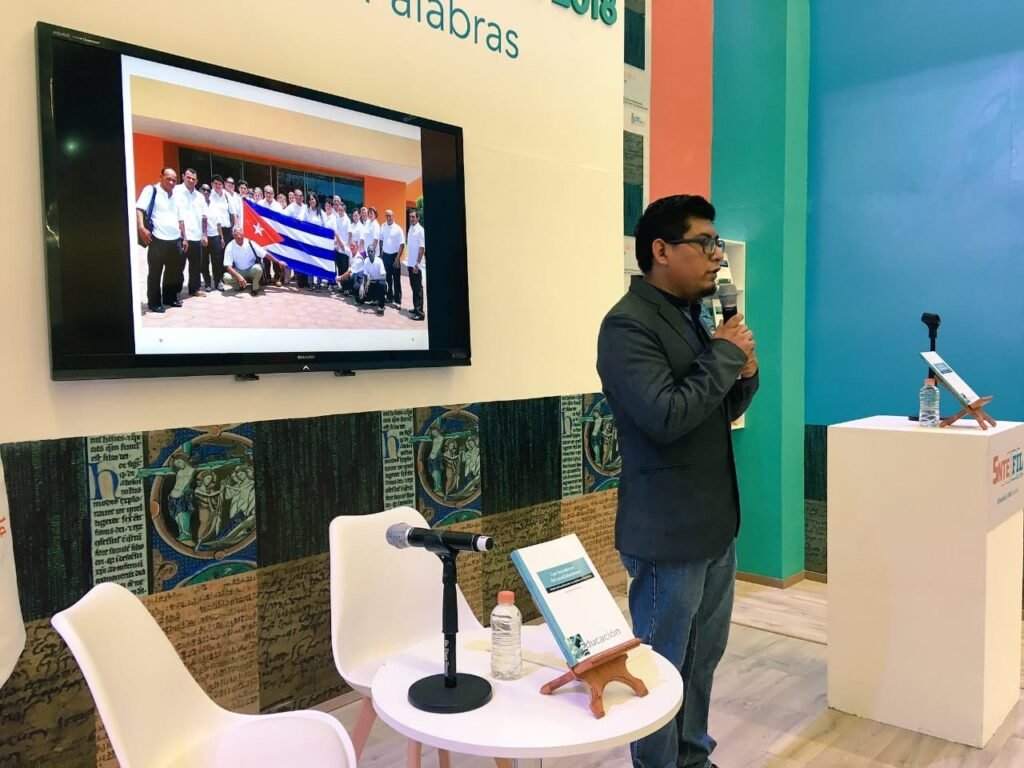 GUADALAJARA, Jal.— El maestro e investigador guerrerense Noé Ibáñez Martínez, presentó este jueves su libro “Los herederos del analfabetismo. Historia de la educación de adultos en Guerrero”, editado por el Fondo Editorial del Magisterio, en el stand ágora de SNTE-FIL, en el marco de la Feria Internacional del Libro de Guadalajara.