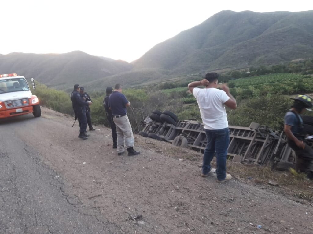 Un tráiler volcó en la carretera Tlapa-Puebla, aproximadamente dos kilómetros antes de llegar al municipio de Alpoyeca, en la región de La Montaña.