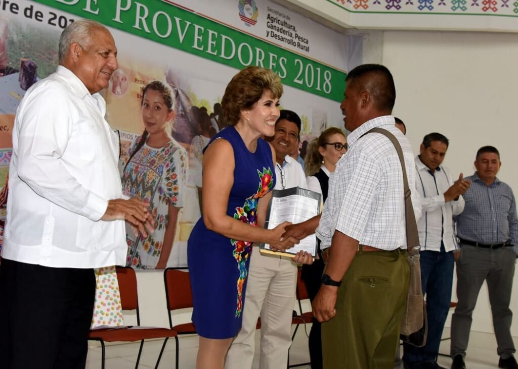 Durante el arranque del primero de 13 tianguis de selección de proveedores 2018 de la Sagadegro que se realizarán en todo el estado, mediante el Programa Estratégico de Seguridad Alimentaria (PESA), la presidenta del Patronato DIF Guerrero, Mercedes Calvo de Astudillo, entregó las primeras notificaciones a los beneficiarios y resaltó la importancia del programa para las comunidades rurales.