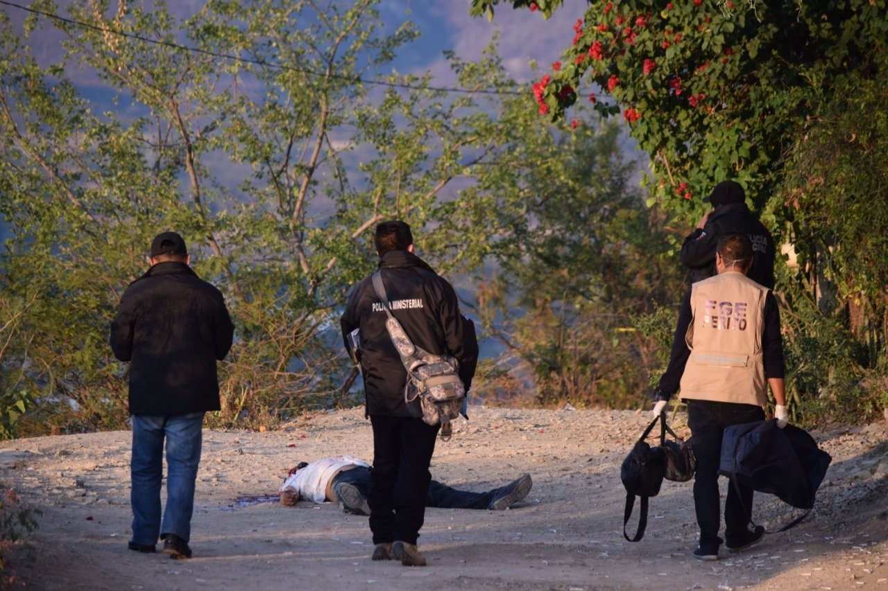 Policías del municipio de inmediato se trasladaron al lugar donde efectivamente estaba el cuerpo de un hombre con la cabeza destrozada a balazos; a un lado de este había un cuchillo “cebollero” y varios casquillos, cuyo calibre se ignora.