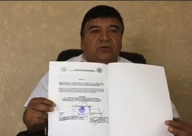 En conferencia de prensa que ofreció en Chichihualco, cabecera de Leonardo Bravo, el primer edil explicó que “el día de hoy me están entregando mi carta de liberación, con una constancia certificada, donde se dio la investigación y no les debo nada”, dijo mientras mostraba el documento expedido por la PGR.