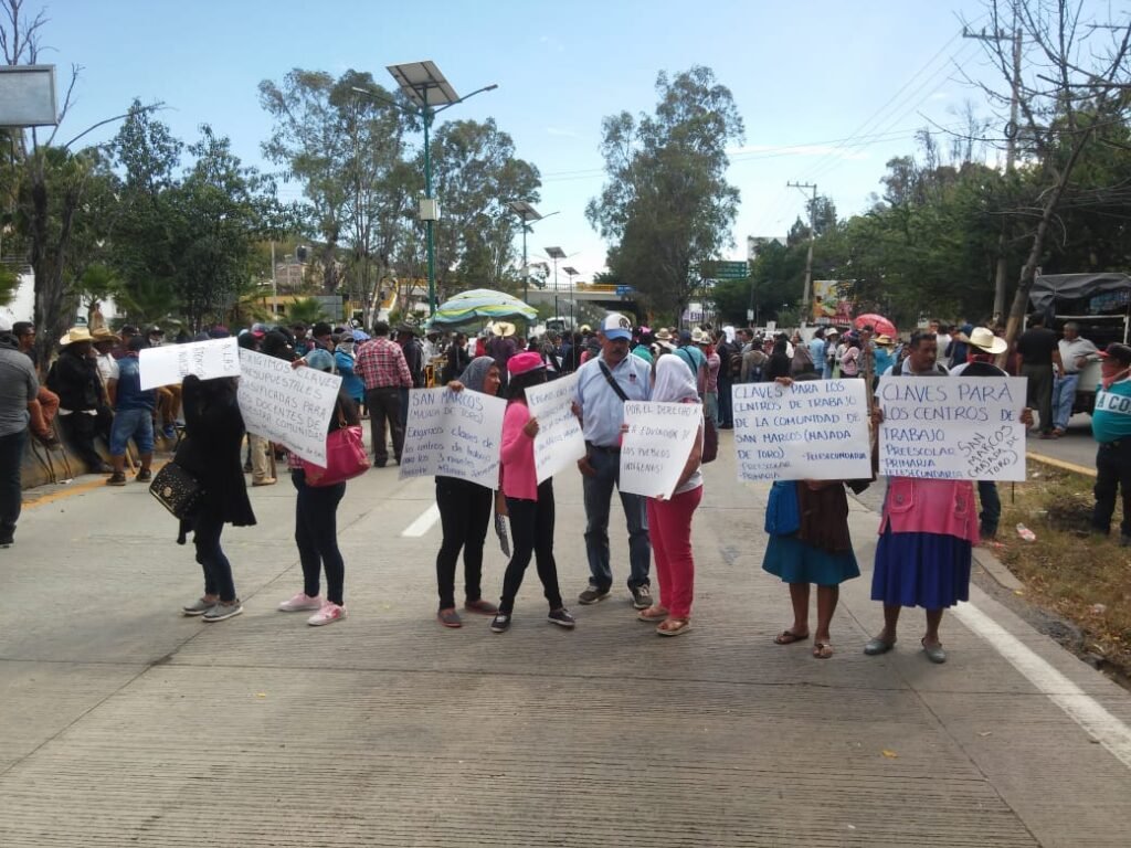 Cerca de 300 personas, entre padres de familia y maestros provenientes de las comunidades de San Marcos y Ahuelicán, invaden desde las 12:30 horas los carriles norte-sur de la Autopista del Sol, a la altura de los juzgados federales, impidiendo el paso a autovomilistas que viajan rumbo al puerto de Acapulco.