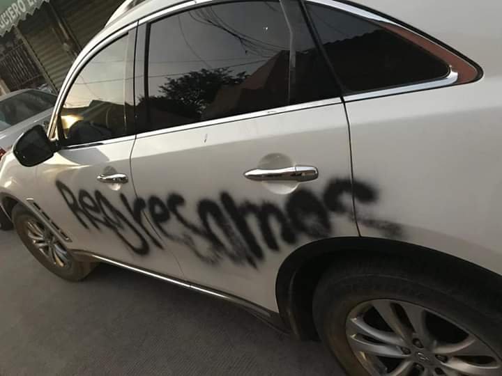 * La legisladora igualteca denunció que pintaron “Regresamos” en su auto, lo que consideró una amenaza porque Morena aprobó un presupuesto austero