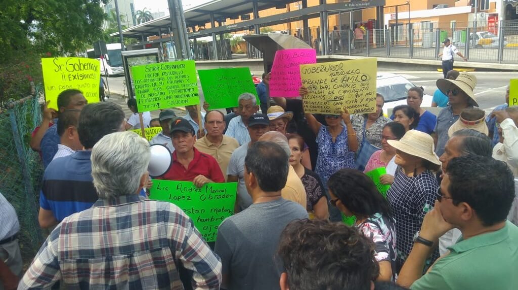 ACAPULCO.— Por segundo día consecutivo, socios del Sistema de Transporte Integral del Acabús protestaron para reclamar el pago de una indemnización justa por la entrega de sus concesiones, esta vez en la avenida Cuauhtémoc, frente al Palacio Municipal.