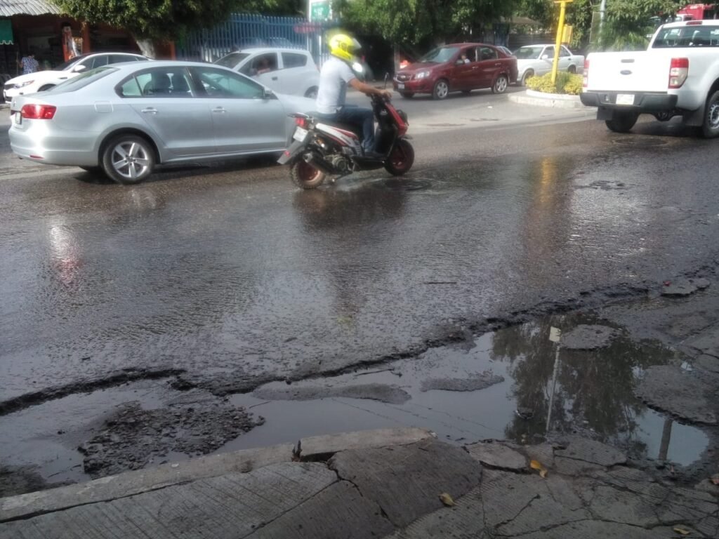 Desde hace algunos días comenzaron a emanar las aguas negras de uno de los registros de drenajes ubicado en la mencionada vialidad esquina con la calle Circunvalación y afecta a las personas que acuden a la Secretaría de Salud Estatal, a un importante corredor comerciar de la zona y a comerciantes ambulantes.