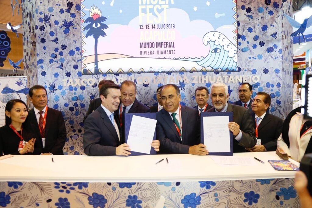 MADRID, España.— En el marco de la Feria Internacional de Turismo que se lleva a cabo en la capital española, se firmó el convenio entre Ifema, Mundo Imperial y como testigo el gobierno de Guerrero, para celebrar del 12 al 14 de julio próximo el Festival Mulafest 2019, que atraerá al puerto de Acapulco alrededor de 30 mil jóvenes.