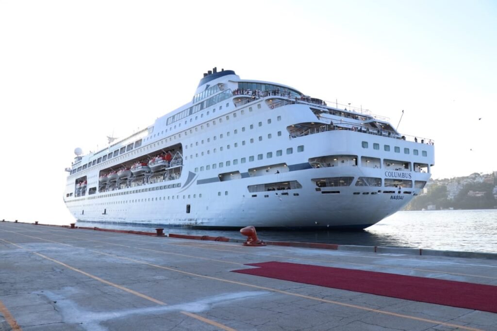 El “Columbus” atracó por la mañana en la Terminal Marítima, donde fueron recibidos por autoridades los mil 210 pasajeros y 619 tripulantes que viajan en este barco turístico.