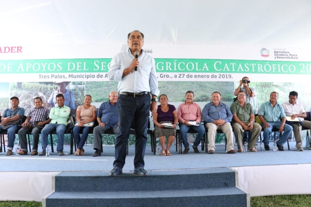 En su momento, el secretario de Agricultura, Ganadería, Pesca y Desarrollo Rural del Estado, Juan José Castro Justo, informó al gobernador que se entregarán en total más de 3.6 millones de pesos en pagos del Seguro Agrícola Catastrófico a 2 mil 982 productores de 35 comunidades rurales de Acapulco quienes fueron afectados en sus cosechas por la disminución de lluvias, fenómeno que pego más en la región Tierra Caliente.