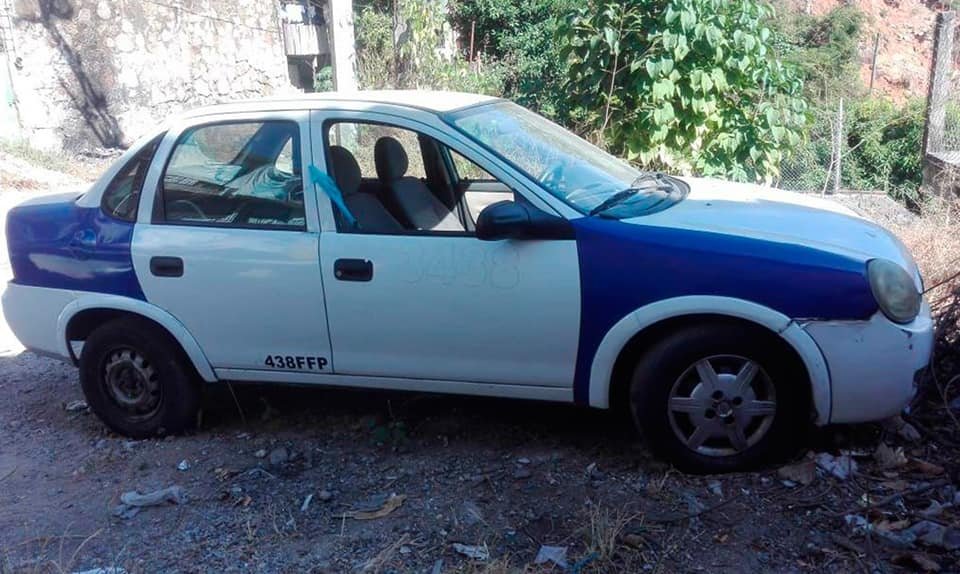 Asimismo, tras el reporte de un vehículo abandonado en la avenida Yoloxóchitl de la colonia Sinaí, personal del Grupo “Centauro” localizó un vehículo del servicio público, marca Nissan, tipo Tsuru, blanco con amarillo, número económico 2803, placas de circulación A826FFL del estado, que tenía reporte de robo del día 17 del mes y año en curso de acuerdo a la base de datos de del sistema 911.