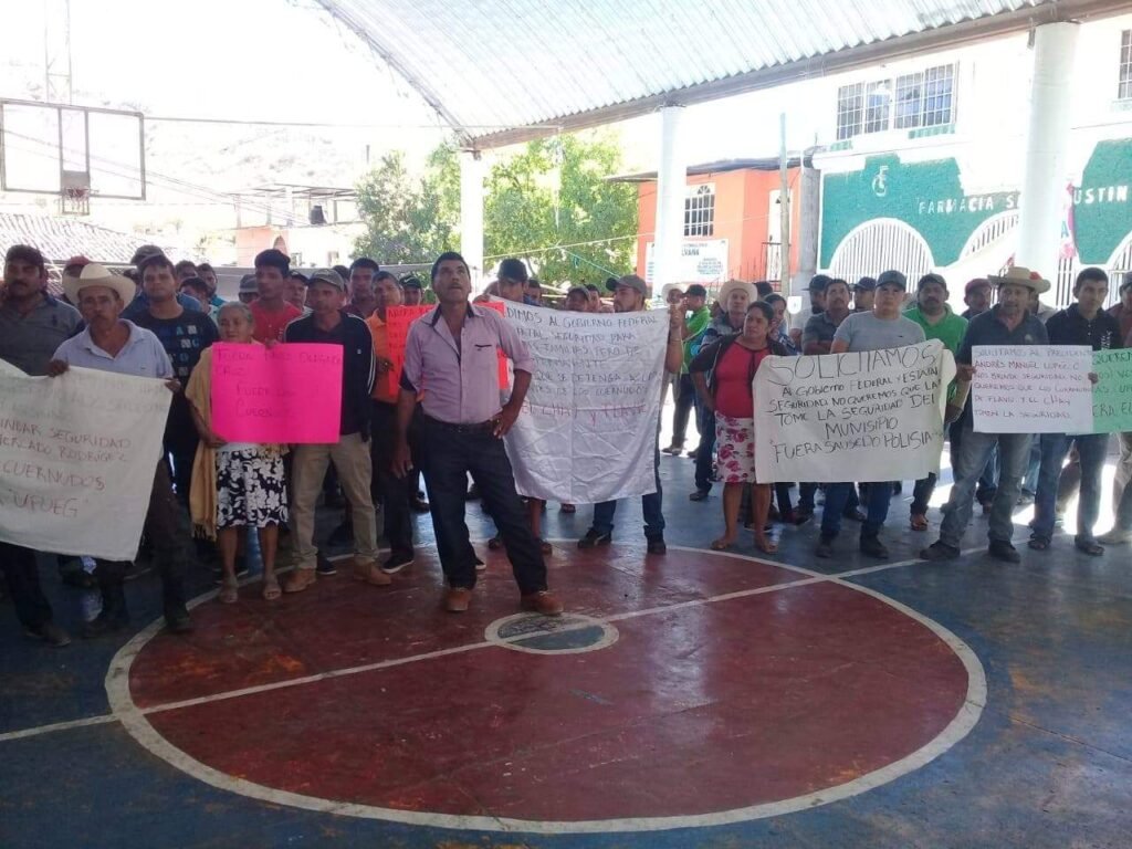 Este jueves, al menos 500 personas realizaron una marcha y mitin en la cancha deportiva del centro de este poblado donde denunciaron que los supuestos comunitarios que se conformaron hace unos días, en realidad son un brazo armado del grupo criminal autollamado “Los Cuernudos”.