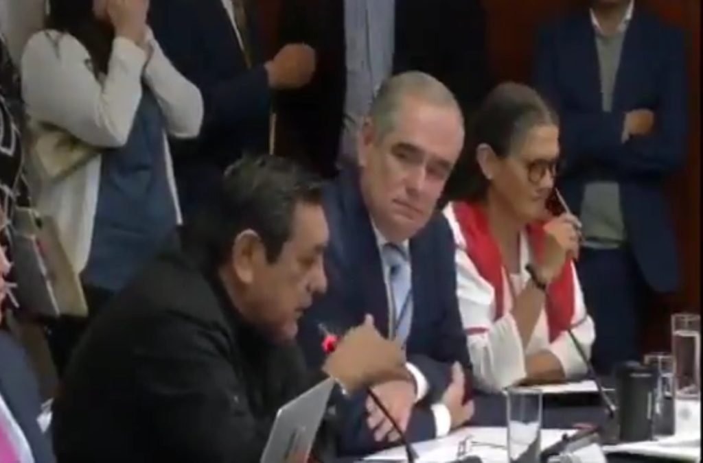 “No soy ningún cínico. Definitivamente si hay algún cínico aquí, no soy yo. No sé quién sea, yo no. Tampoco miento, hablo con la verdad. Aquí está la minuta y quien creo que debe leerla bien es usted, porque hay cosas que usted ha afirmado que no existen en la minuta. Por ejemplo, ya no existe la temporalidad que usted menciona, lo de lo cinco años ya no lo dice. Léala por favor, dígame dónde dice en la minuta que en cinco años se va a salir la Guardia. O sea que para conocer, para hablar y sobre todo para intentar difamar ante las cámaras de televisión y ante el público, hay que hablar con la verdad, hay que hablar con respeto y tener vergüenza al hacer uso de la voz, señor senador”, le respondió Julen Rementería del Puerto.