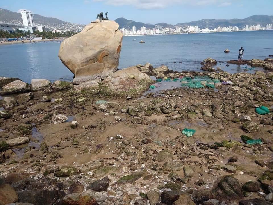 ACAPULCO.— Por efecto de un fenómeno conocido como marea baja, la tarde de este sábado el mar se retiró hasta 20 metros adentro en la playa Dominguillo, ubicada en la zona Tradicional de Acapulco.