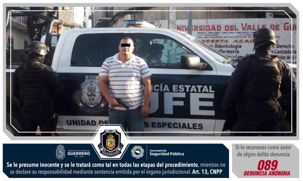 Durante los patrullajes realizados en prevención del delito en Zumpango del Río, municipio de Eduardo Neri, los elementos observaron a un masculino que conducía un vehículo en sentido contrario e intentó evadirlos; dijo llamarse Azael “N”, de 25 años y traía fajada en la cintura un arma de fuego corta, marca Browning Arms Company Morgan, calibre 9mm, con tres cargadores y 30 cartuchos útiles.