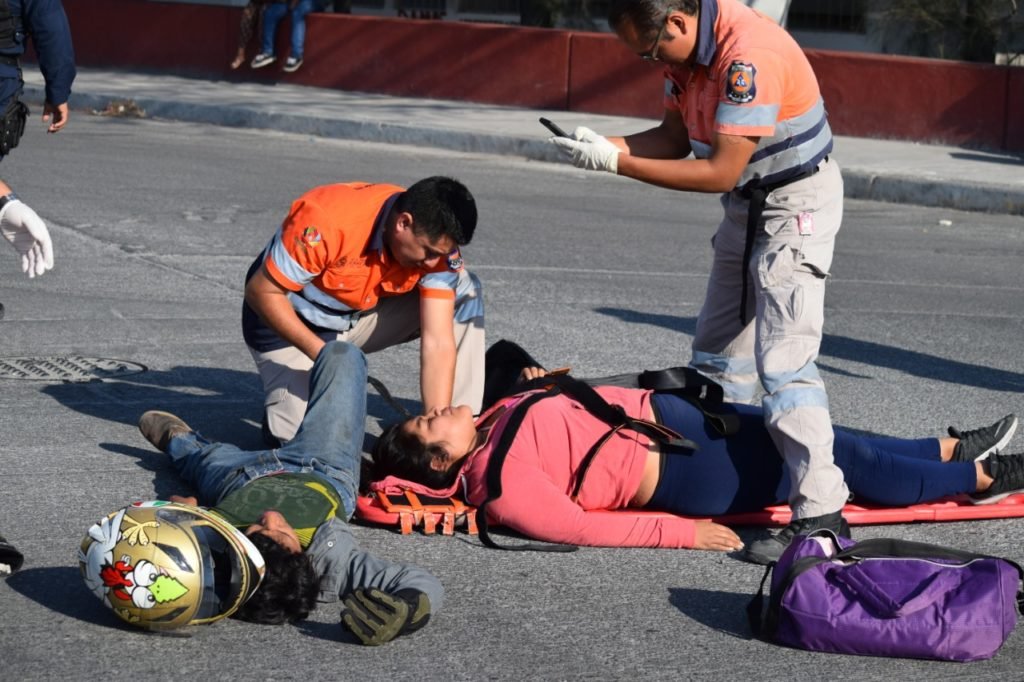 Paramédicos de Protección Civil del Estado estabilizaron a los lesionados y los trasladaron a una clínica a recibir atención médica, mientras que el chofer del auto quedó en calidad de retenido por los oficiales de Tránsito Municipal.