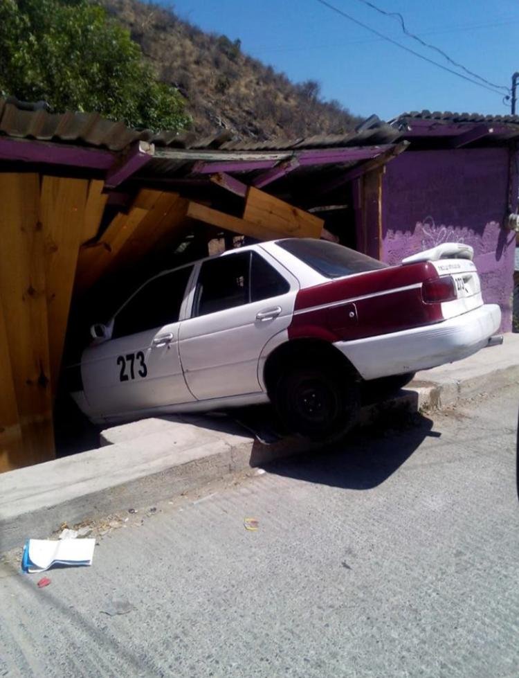 Pero en ese momento y de manera totalmente inesperada, un taxi de la marca Nissan, tipo Tsuru, marcado con el número económico 273, conducido por Félix Mónico Julián, bajó a toda velocidad por esa pendiente debido a que se le botaron los frenos, y terminó yéndose a impactar contra la humilde casa construida con lámina y madera.