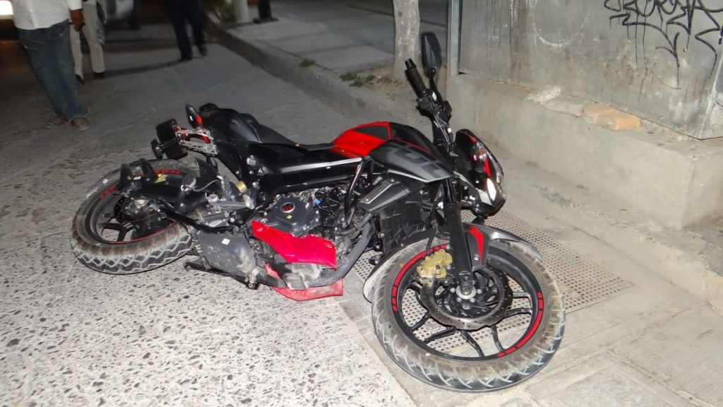 El choque fue aparatoso y desproporcionado, llevándose la peor parte el motociclista quien salió volando con todo y caballo de acero.