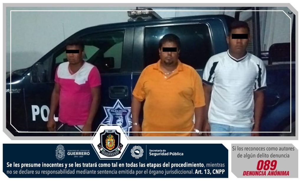 Policías Estatales capturaron a tres personas por portación de arma de fuego, cartuchos útiles de uso exclusivo del Ejército, Armada y Fuerza Aérea y un vehículo sobre la carretera federal Acapulco – Pinotepa Nacional, en la entrada al municipio de Copala, en la región de la Costa Chica.