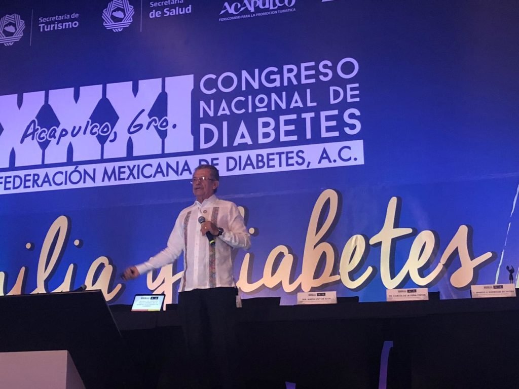 En este congreso organizado por la Federación Mexicana de Diabetes A.C., e inaugurado por el gobernador Héctor Astudillo Flores en Acapulco, el titular de Salud dio una conferencia sobre las causas y el tratamiento de la enfermedad.