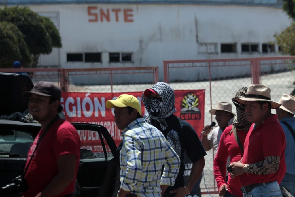 Unos 200 afiliados a la Coordinadora Estatal de Trabajadores de la Educación en Guerrero (CETEG), tomaron unas horas el edificio de la Sección 14 del Sindicato Nacional de Trabajadores de la Educación (SNTE) y después de irrumpir con violencia en el interior, quemaron documentos, lonas, muebles y equipo de oficina en la explanada.