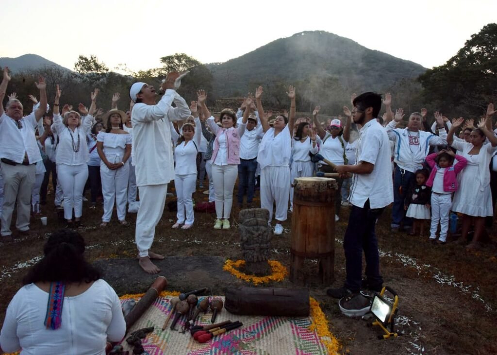 Cientos de familias se congregaron en la zona arqueológica de Tehuacalco para formar parte de equinoccio de primavera con un ritual que fomenta la tradición de las culturas indígenas.