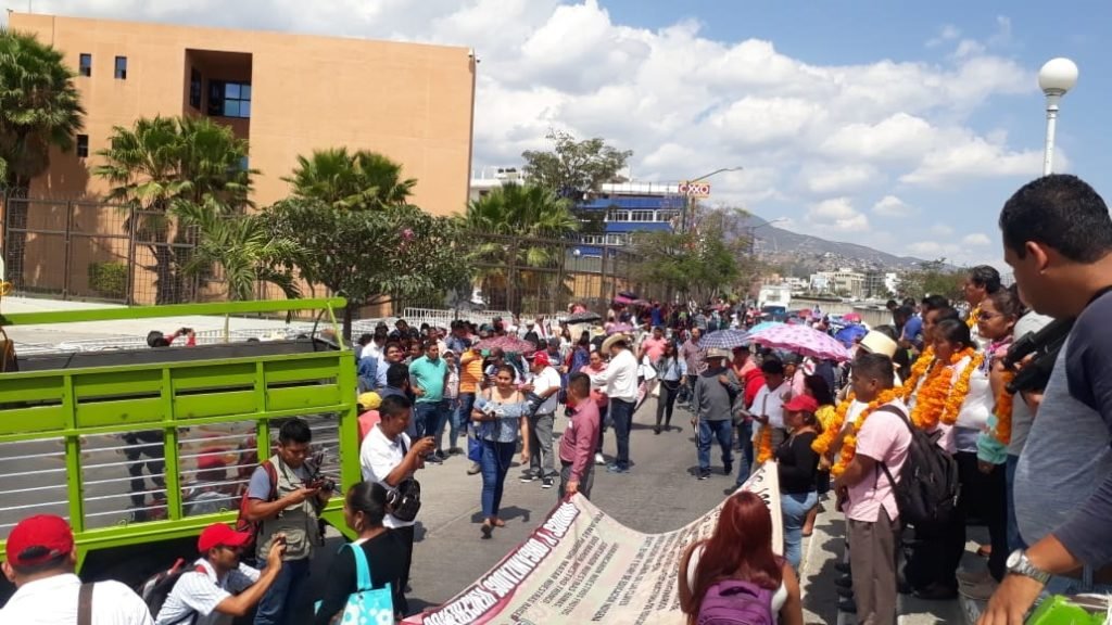 El contingente, integrado por unas 300 personas, partió poco después de las 11:00 horas y marchó en apoyo del nuevo director de Educación Indígena, Juventino Prado Moreno, y para exigir la derogación total de la reforma educativa.