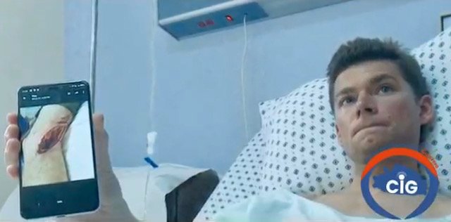 Al ser entrevistado en la clínica, el joven mostró la herida detrás de su rodilla de una longitud de cerca de 20 centímetros, a través de fotos que tomó con su celular antes de ser intervenido, y expresó que los médicos que lo atendieron confirmaron que si se trata de la mordida de un tiburón.