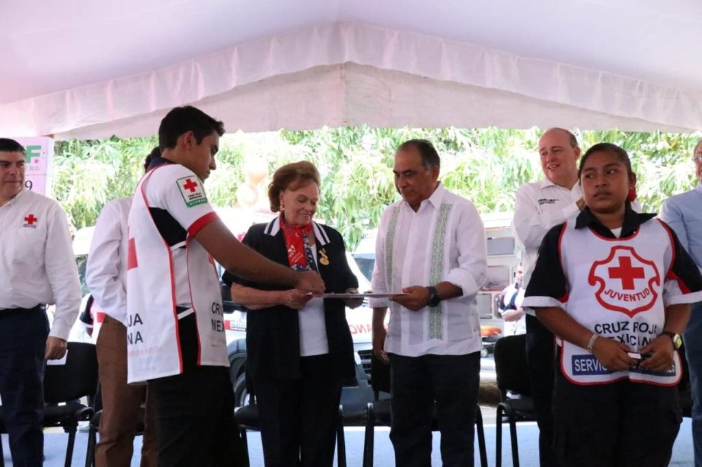 En el área de estacionamiento de la Promotora Turística, acompañado del presidente Nacional de Cruz Roja Mexicana, Fernando Suinaga Cárdenas, de la presidenta Consejera Nacional y delegada Estatal de la Cruz Roja, Susana Palazuelos Wichtendehl, el Ejecutivo estatal reconoció el espíritu humanitario de esta institución y la labor que realiza a favor de la población, por ello enfatizó que “la Cruz Roja es una institución que tenemos que apoyarla, para ayudarla y para que cumpla con su función social tan importante y tan diríamos, añeja”.