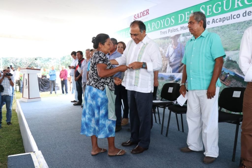 ACAPULCO.— El gobernador Héctor Astudillo Flores entregó apoyos del pago de Seguro Agrícola Catastrófico a un total de mil 552 productores pertenecientes a 15 localidades quienes fueron beneficiados por un monto equivalente a casi 1.8 millones de pesos, cifra que se suma a la entrega anterior de 1.8 millones, sumando un total de 3.6 millones de pesos, lo que les permitirá resarcir los daños que sufrieron en sus cosechas y terrenos de cultivo derivado de los fenómenos naturales.