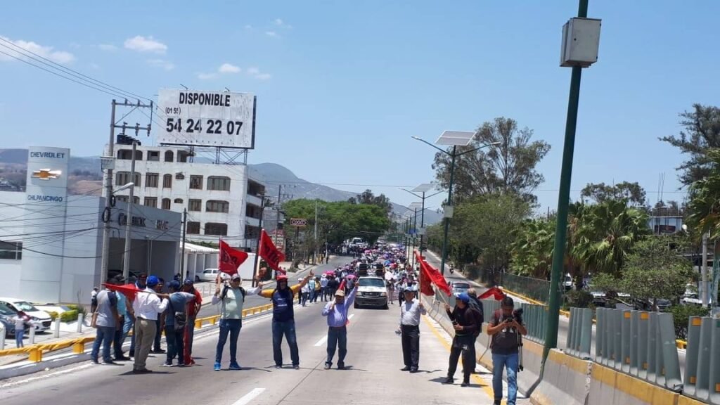 A las 13:50 el contingente avanzó del Congreso del Estado con rumbo al sur de la ciudad, sobre la Autopista del Sol en el sentido México-Acapulco, generando un intenso caos vehicular en la zona.