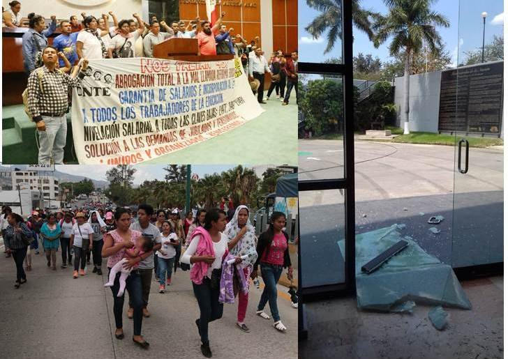 Mientras eso ocurría dentro del Congreso, el resto de los maestros mantenían tomado el Congreso y bloquearon todos los accesos del edificio para evitar la entrada o salida de diputados y trabajadores.