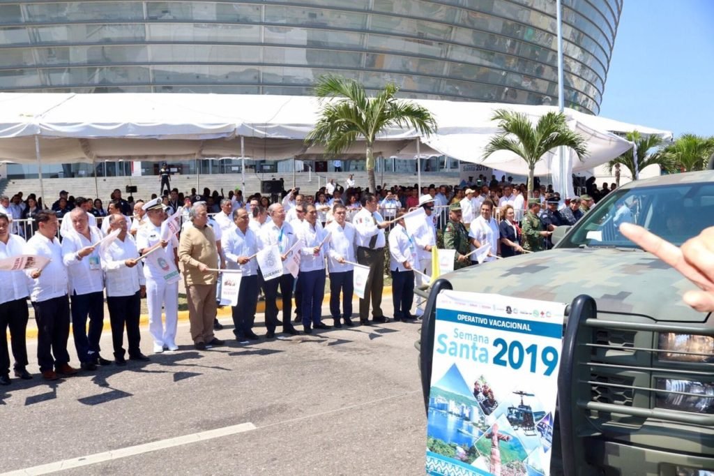 ACAPULCO.— El gobernador Héctor Astudillo Flores y el secretario de Turismo federal, Miguel Torruco Marqués, dieron el banderazo al Operativo Nacional de Semana Santa 2019, que comprenderá del 15 al 28 de abril, en el cual se busca garantizar la seguridad de los vacacionistas que llegan a los diferentes destinos turísticos del país.